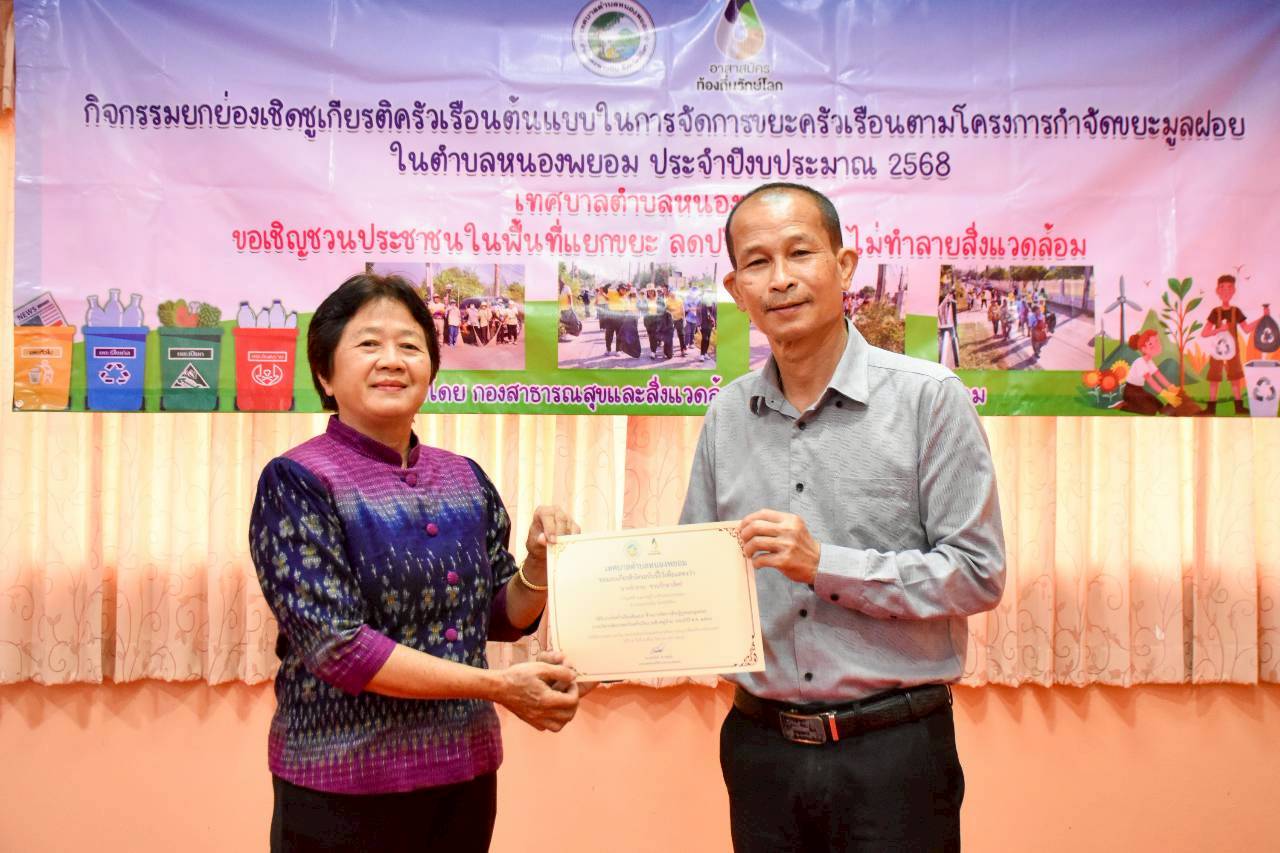 ประกาศเทศบาลตำบลหนองพยอม เรื่อง การยกย่องเชิดชูเกียรติครัวเรือนต้นแบบในการจัดการขยะครัวเรือน ตำบลหนองพยอม ประจำปี พ.ศ. 2568