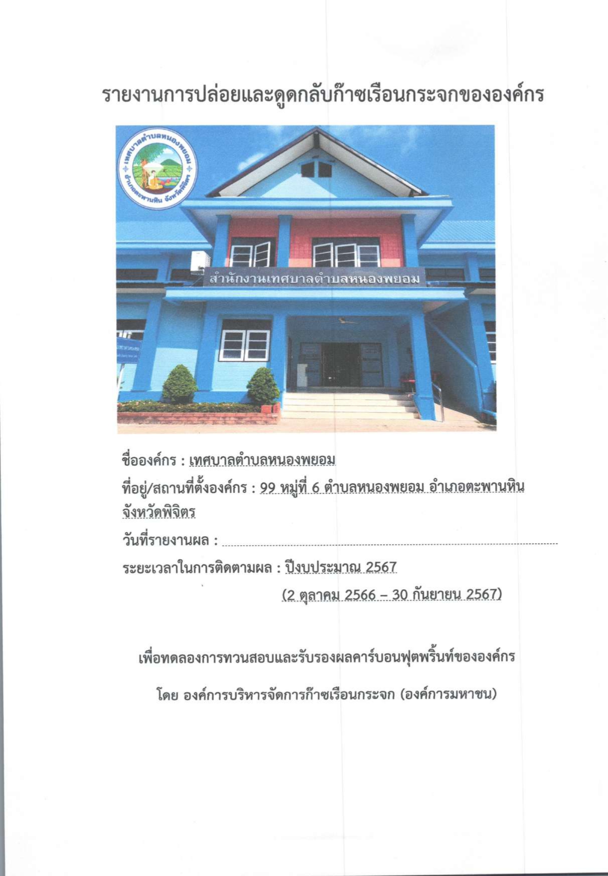 รายงานการปล่อยและดูดก๊าซกลับก๊าซเรือนกระจกขององค์กร รายงานการปล่อยและดูดก๊าซกลับก๊าซเรือนกระจกขององค์กร