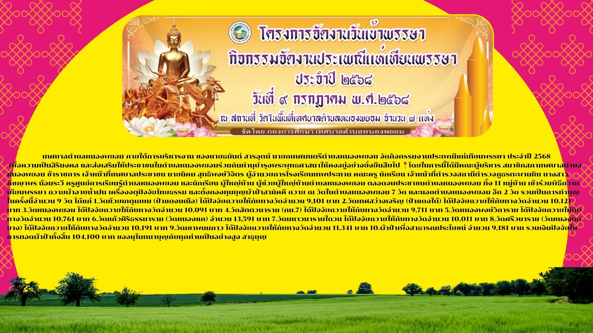 ประกาศเทศบาลตำบลหนองพยอม เรื่อง การสิ้นสุดการได้รับเงินเบี้ยยังชีพผู้สูงของเทศบาลตำบลหนองพยอม อายุ ปีงบประมาณ พ.ศ.2568 ประจำเดือน มิถุนายน 2568