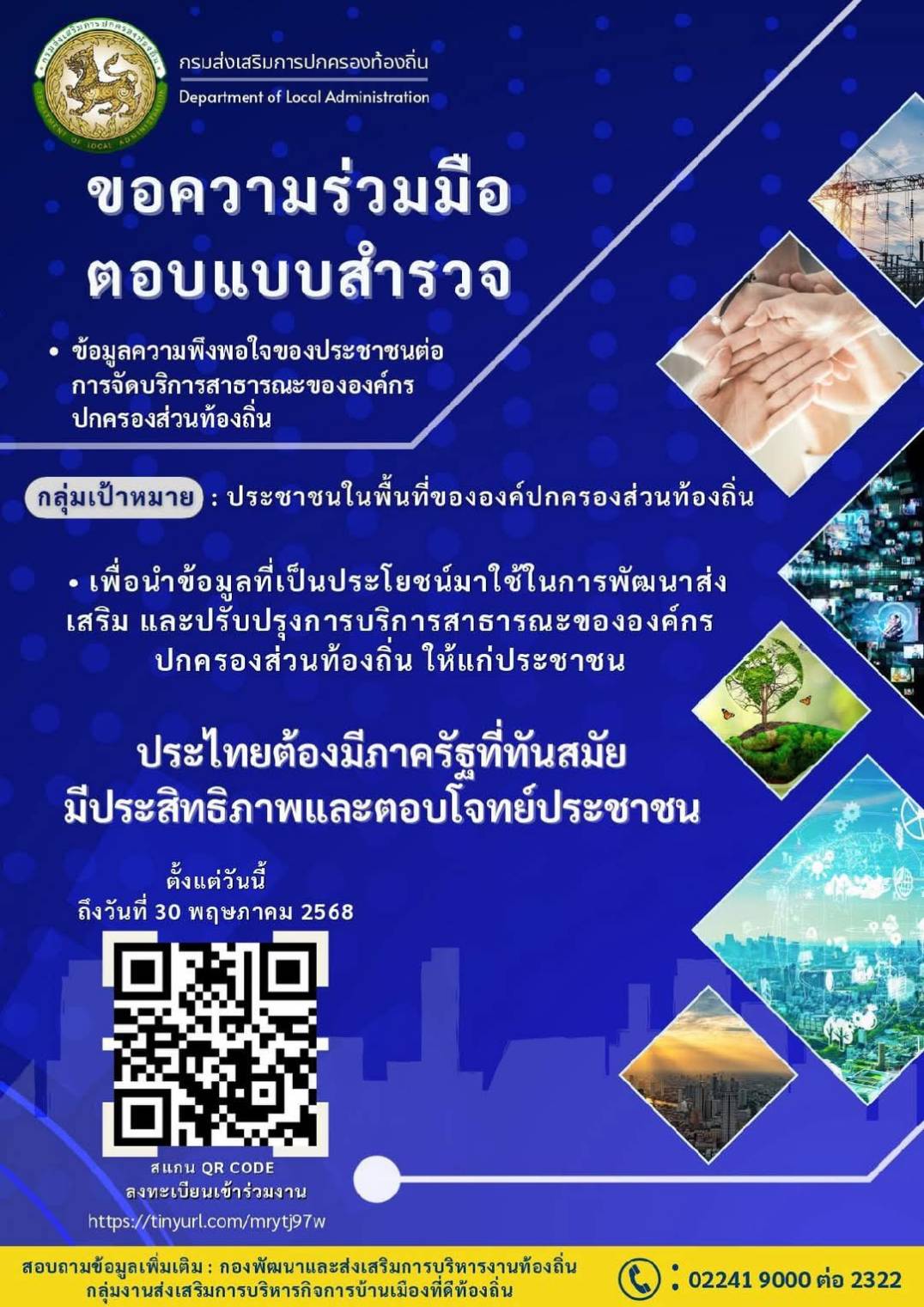 ตอบแบบสำรวจ ความพึงพอใจของประชาชนต่อการจัดบริการสาธารณะขององค์กรปกครองส่วนท้องถิ่น