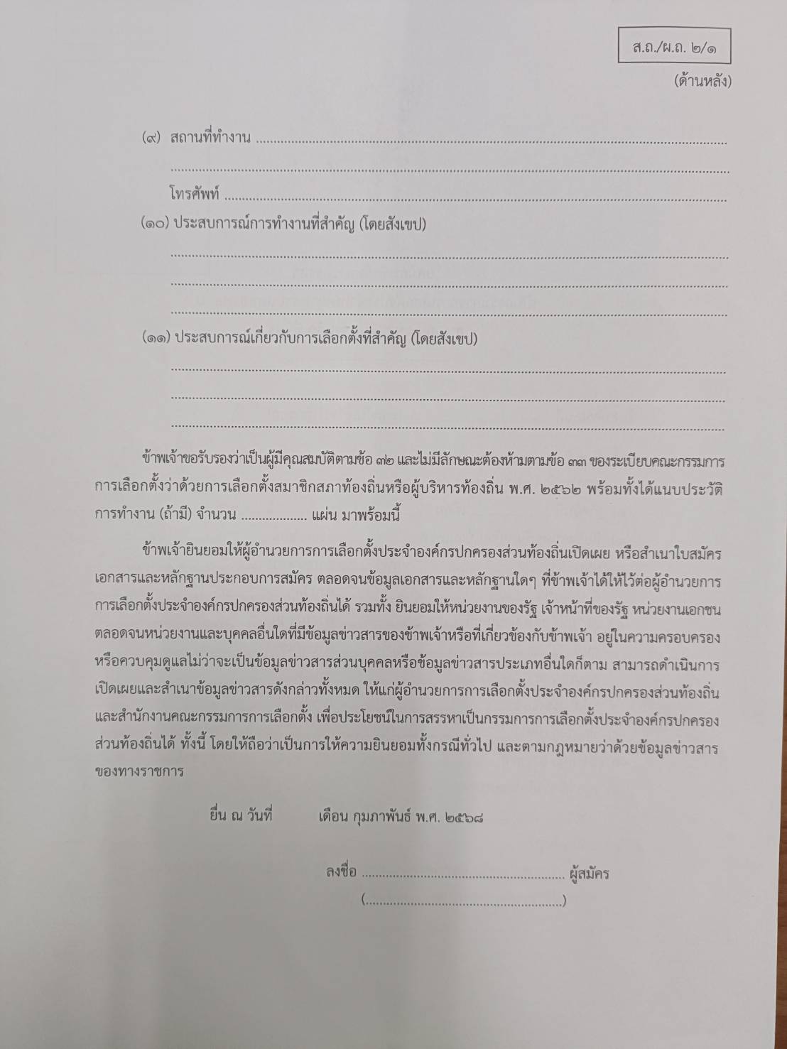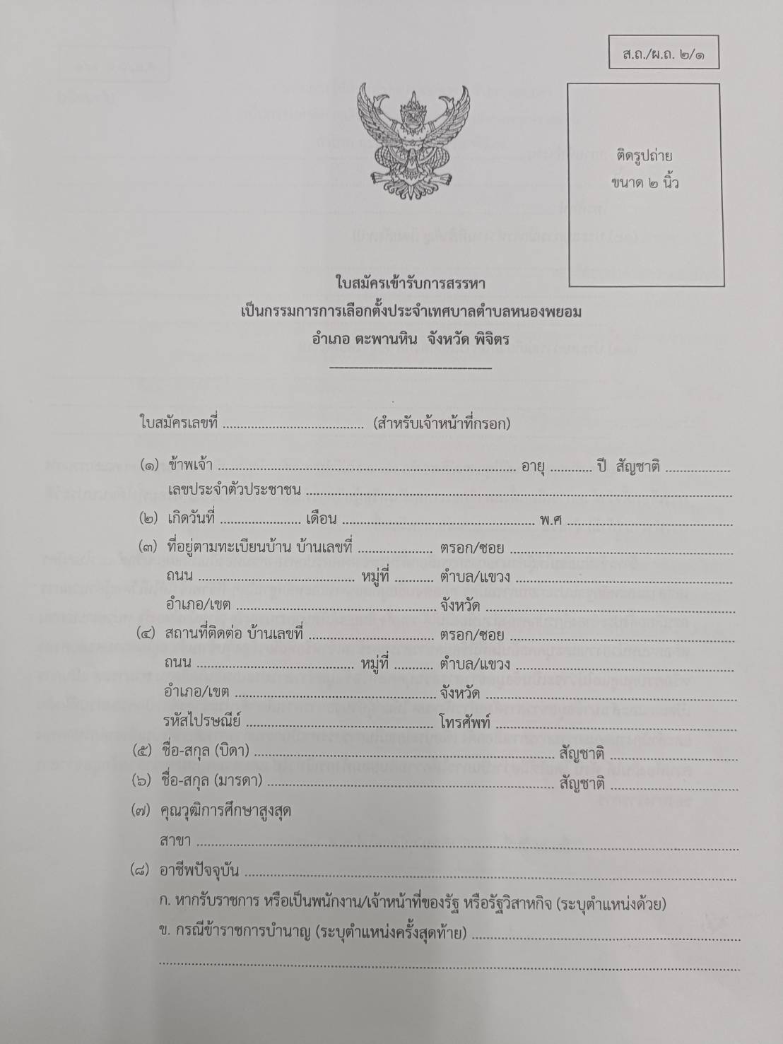 ใบสมัครเข้ารับการสรรหาเป็นกรรมการเลือกตั้งประจำเทศบาลตำบลหนองพยอม อำเภอตะพานหิน จังหวัดพิจิตร