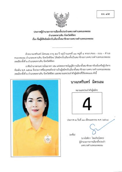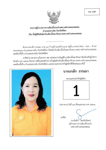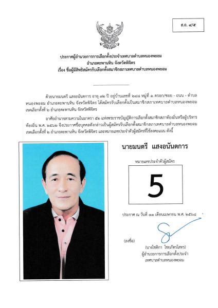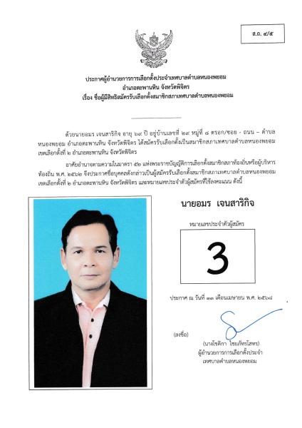 ประกาศผู้อำนวยการเลือกตั้งประจำเทศบาลตำบลหนองพยอม