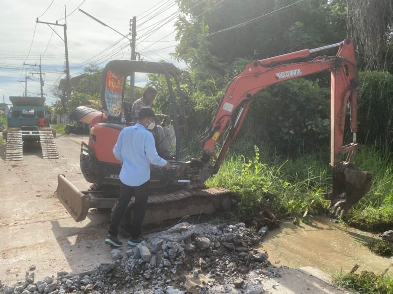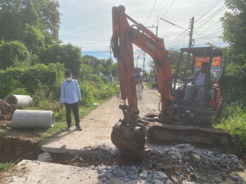 ภารกิจเร่งด่วน บริการด้วยหัวใจ ใส่ใจ ห่วงใยประชาชน นายธนันต์ สารอุตม์ นายกเทศมนตรีตำบลหนองพยอม พร้อมด้วย นายปัญญา วงษ์ศิลา ที่ปรึกษานายกฯ นายสมชาย ผลารัตน์เจริญ สมาชิกสภาฯ นางชญาภา เฉลิมชาติ หัวหน้าสำนักปลัดเทศบาล รักษาราชการแทนปลัดเทศบาลฯ เจ้าหน้าที่กองช่าง เจ้าหน้าที่งานป้องกันและบรรเทาสาธารณภัย และนายเฉลิมศักดิ์ คุ้มขัง ผู้ใหญ่บ้านหมู่ที่3 ลงพื้นที่บริเวณหลังโรงเรียนตะพานหิน หมู่ที่ 3 ที่ประสบปัญหาเกิดน้ำท่วมขัง เส้นทางสัญจรการเข้าออกหมู่บ้านขัดข้อง จึงได้ดำเนินการ นำเครื่องจักร ขุดเปิดทางระบายน้ำออก และวางท่อระบายน้ำ เพื่อแก้ไขปัญหาความเดือดร้อนให้พี่น้องประชาชนโดยเร่งด่วน