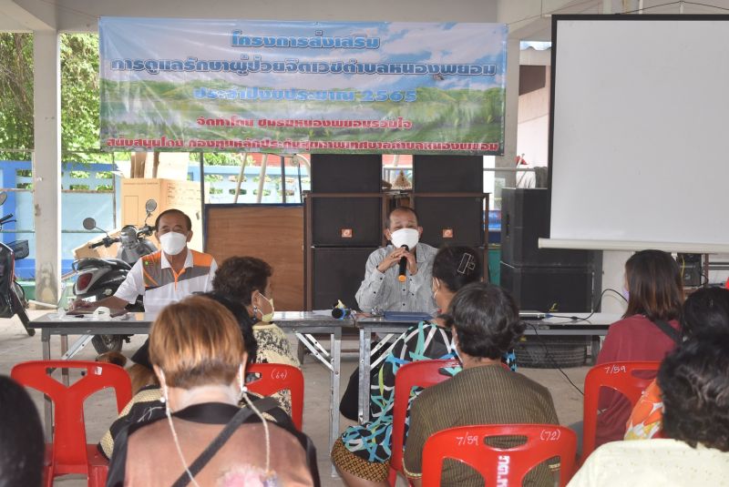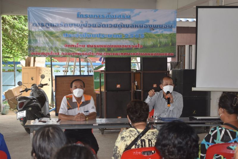 นายธนันต์ สารอุตม์ นายกเทศมนตรีตำบลหนองพยอม เป็นประธานในพิธีเปิดโครงการส่งเสริมการดูแลรักษาผู้ป่วยจิตเวชตำบลหนองพยอม ประจำปี 2565 กล่าวรายงานโดย นายมนตรี แสงอนันตการ ประธานชมรมหนองพยอมรวมใจ ซึ่งชมรมหนองพยอมรวมใจให้ความรู้กับผู้ดูแลและผู้ป่วยจิตเวชเรื่องการช่วยเหลือตนเอง การดูแลสุขภาพและการอยู่ในสังคมของผู้ป่วยจิตเวช และจัดกิจกรรมบำบัดเพื่อกระตุ้นการฟื้นฟูสภาพผู้ป่วย จาก โรงพยาบาลส่งเสริมสุขภาพประจำตำบลหนองพยอม ซึ่งมีกิจกรรมให้ความรู้ ดังนี้