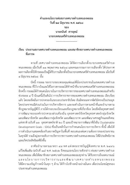 คำแถลงนโยบาย ของนายกเทศมนตรีตำบลหนองพยอม