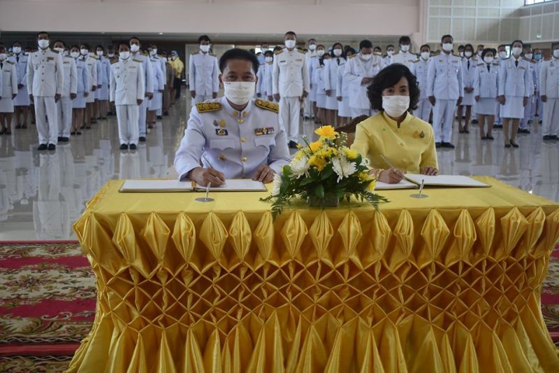 นายอภิชาติ ศรีม่วง นายอำเภอตะพานหิน เป็นประธานพิธีลงนามถวายพระ