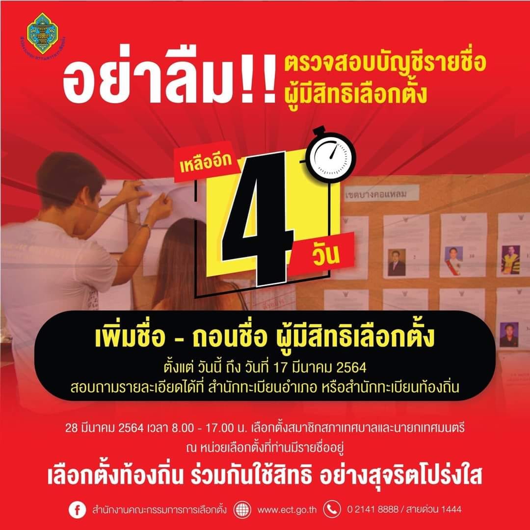 เพิ่มชื่อ-ถอนชื่อ ตั้งแต่วันนี้ ถึงวันที่ 17 มีนาคม 2564 (เหลืออีก 2 วัน)